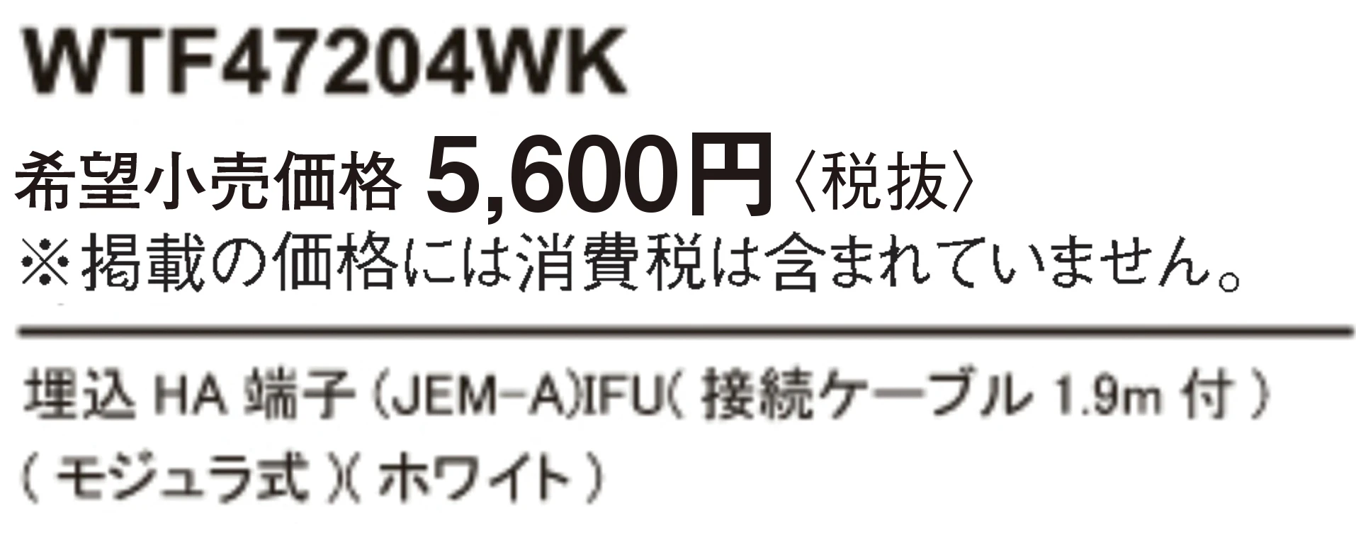 WTF47204WK コスモシリーズワイド21埋込HA端子(JEM-A)IFU(接続ケーブル1.9m付)(モジュラ式)(ホワイト)
