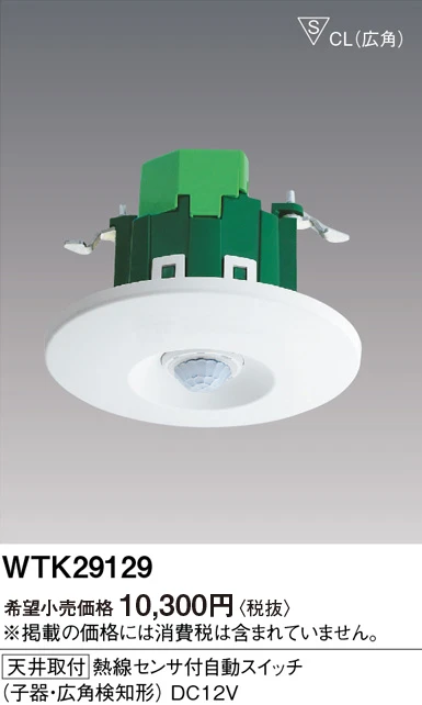 品番:WTK29129品名:[天井取付]熱線センサ付自動スイッチ(子器・広角検知形)