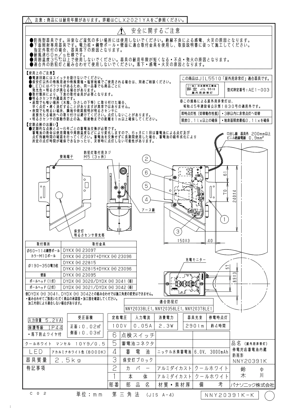 [受注生産品]NNY20391KLE1 LED保安灯 防犯灯一体型
