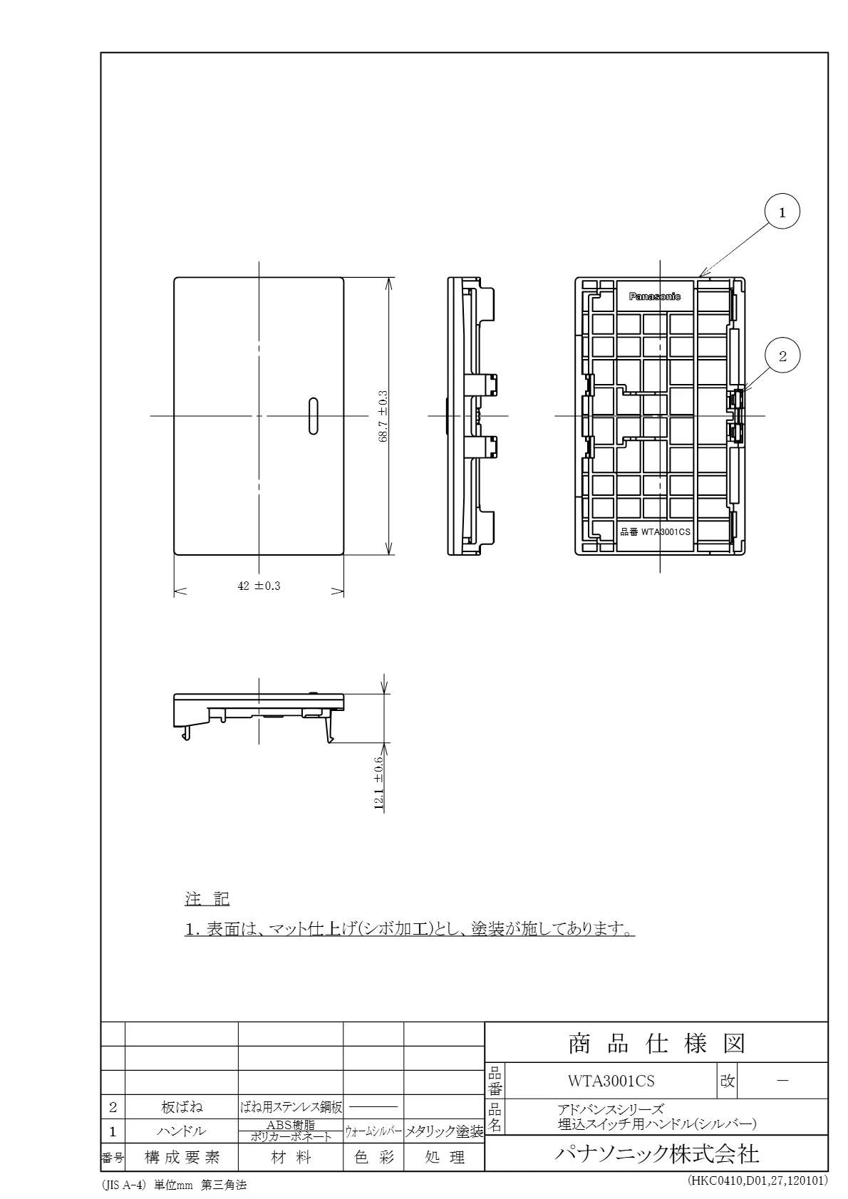 品番:WTA3001CS品名:アドバンスシリーズ 埋込スイッチ用ハンドル