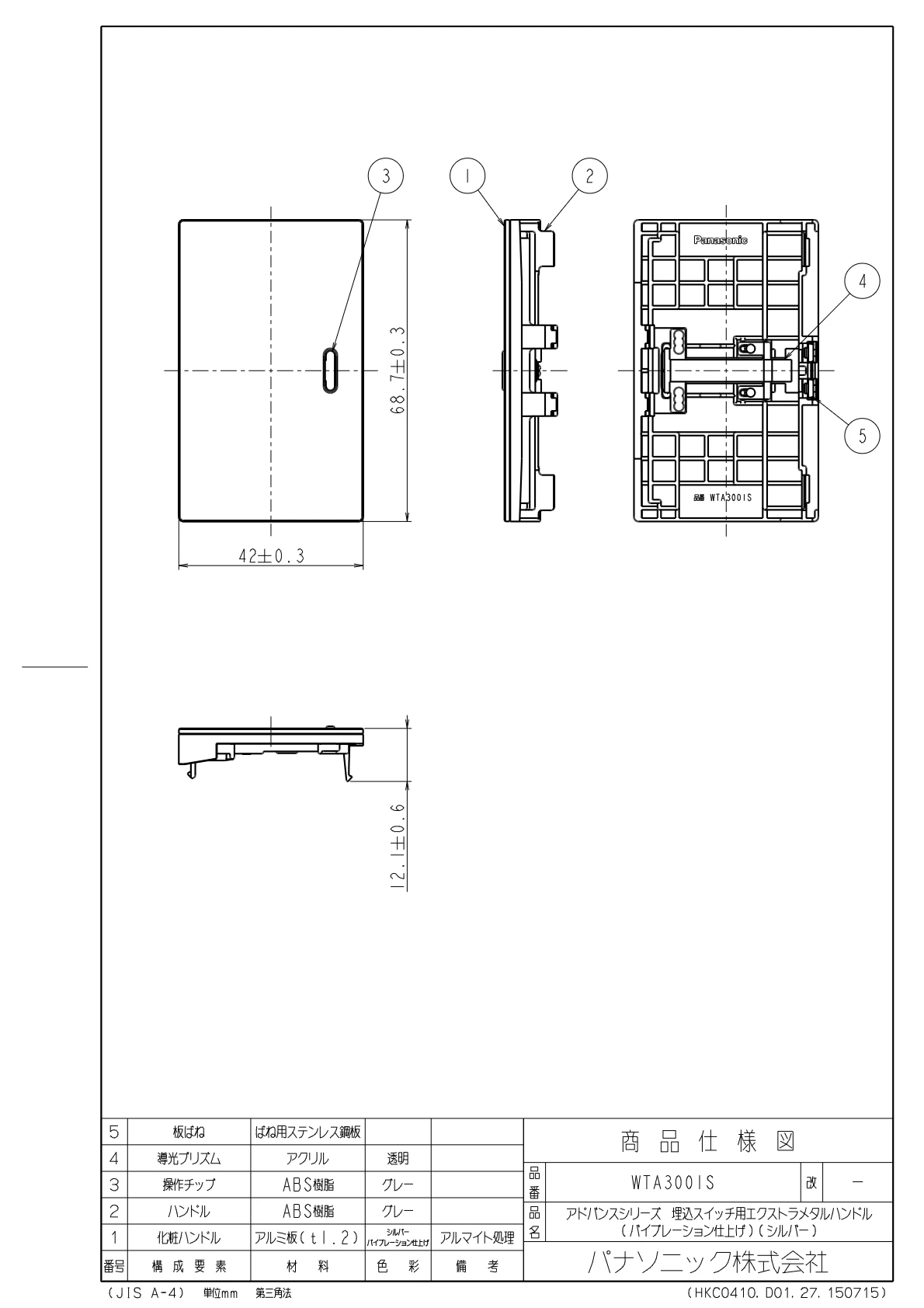 品番:WTA3001S品名:アドバンスシリーズ 埋込スイッチ用エクストラメタルハンドル (バイブレーション仕上げ)(シルバー)