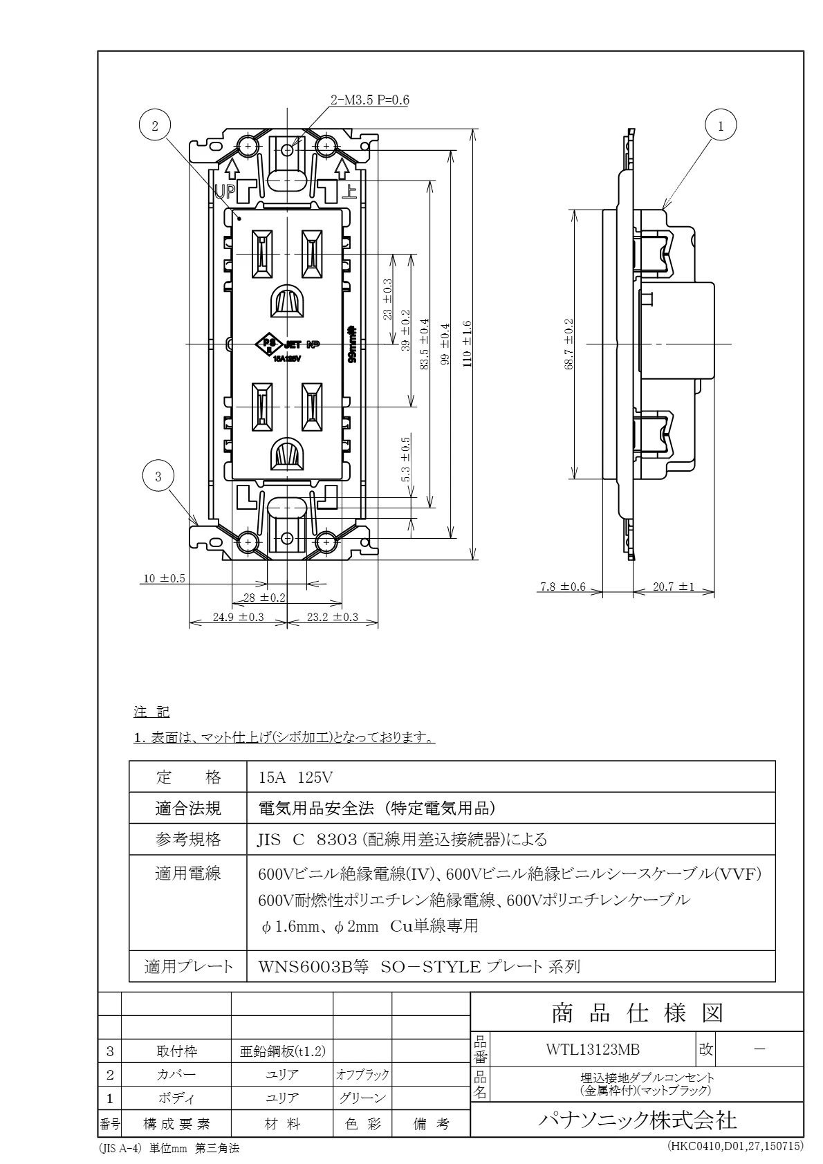 - 電設資材 > パナソニック(Panasonic) > SO-STYLE > コンセント
