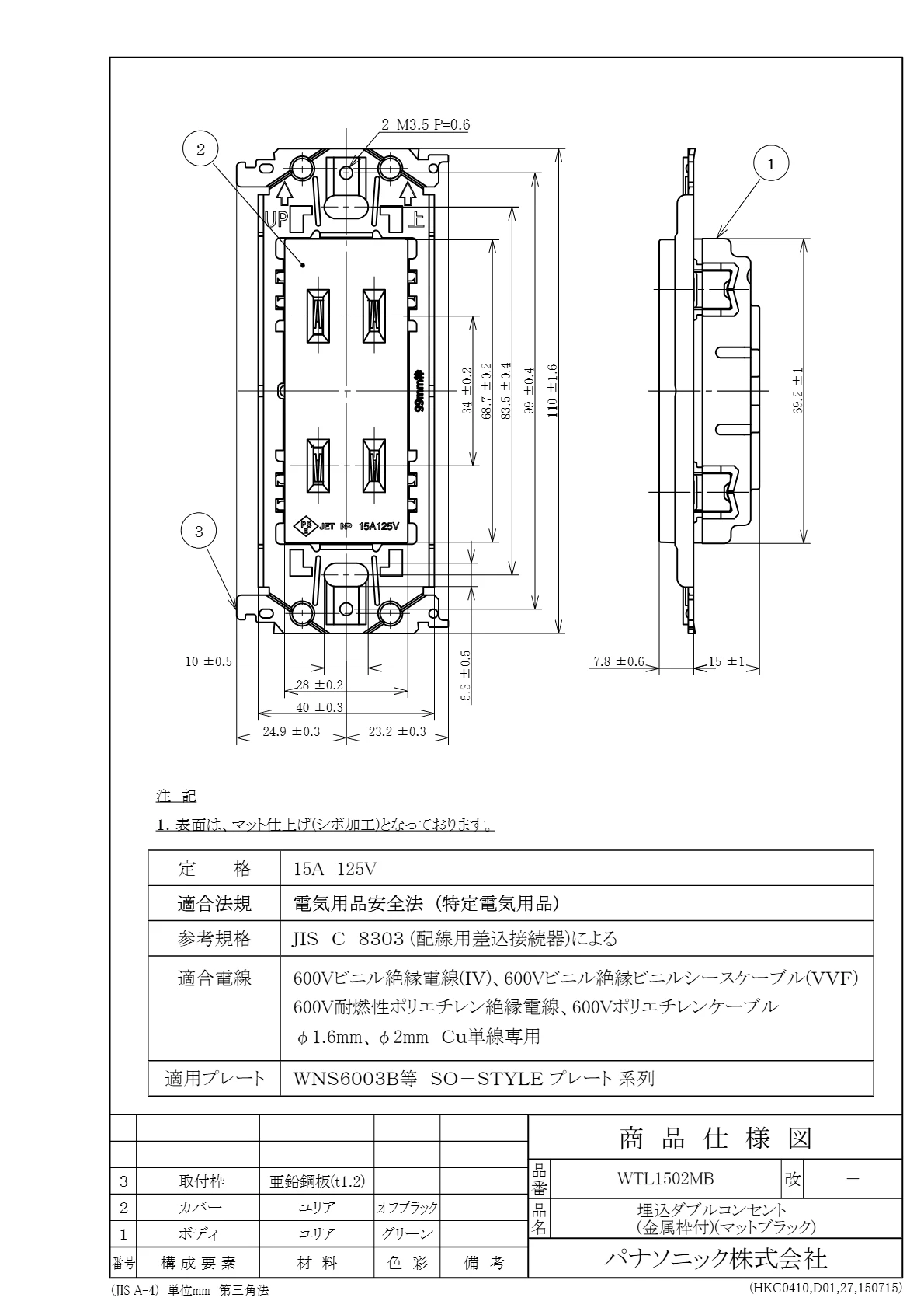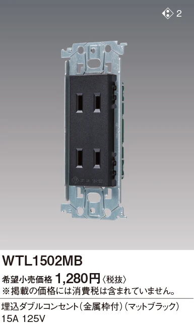 品番:WTL1502MB品名:SO-STYLE 埋込ダブルコンセント(金属枠付)(マットブラック)