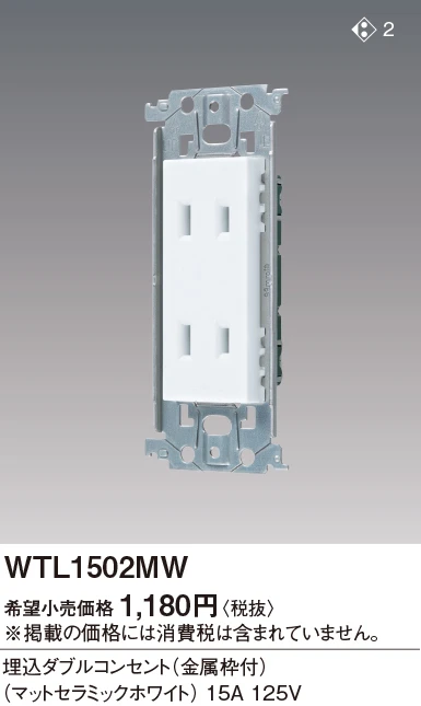 品番:WTL1502MW品名:SO-STYLE 埋込ダブルコンセント(金属枠付)(マットセラミックホワイト)