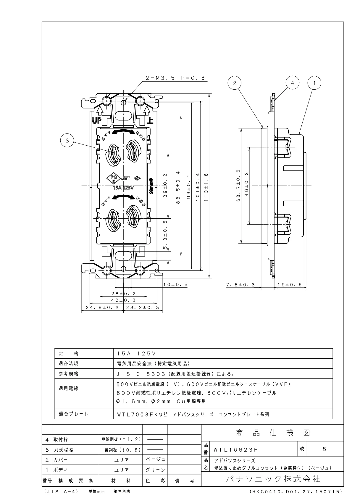 - 電設資材 > パナソニック(Panasonic) > アドバンスシリーズ > コンセント