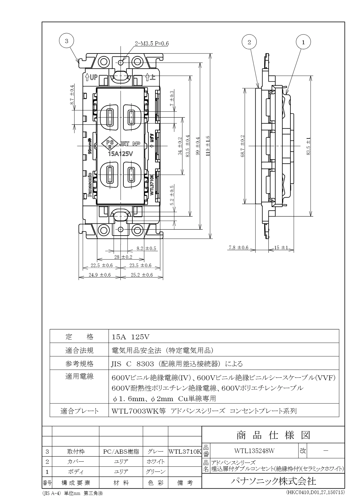 - 電設資材 > パナソニック(Panasonic) > アドバンスシリーズ > コンセント