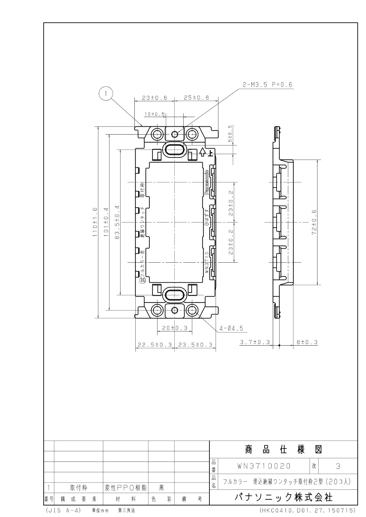 WN3710 埋込絶縁ワンタッチ取付枠2型