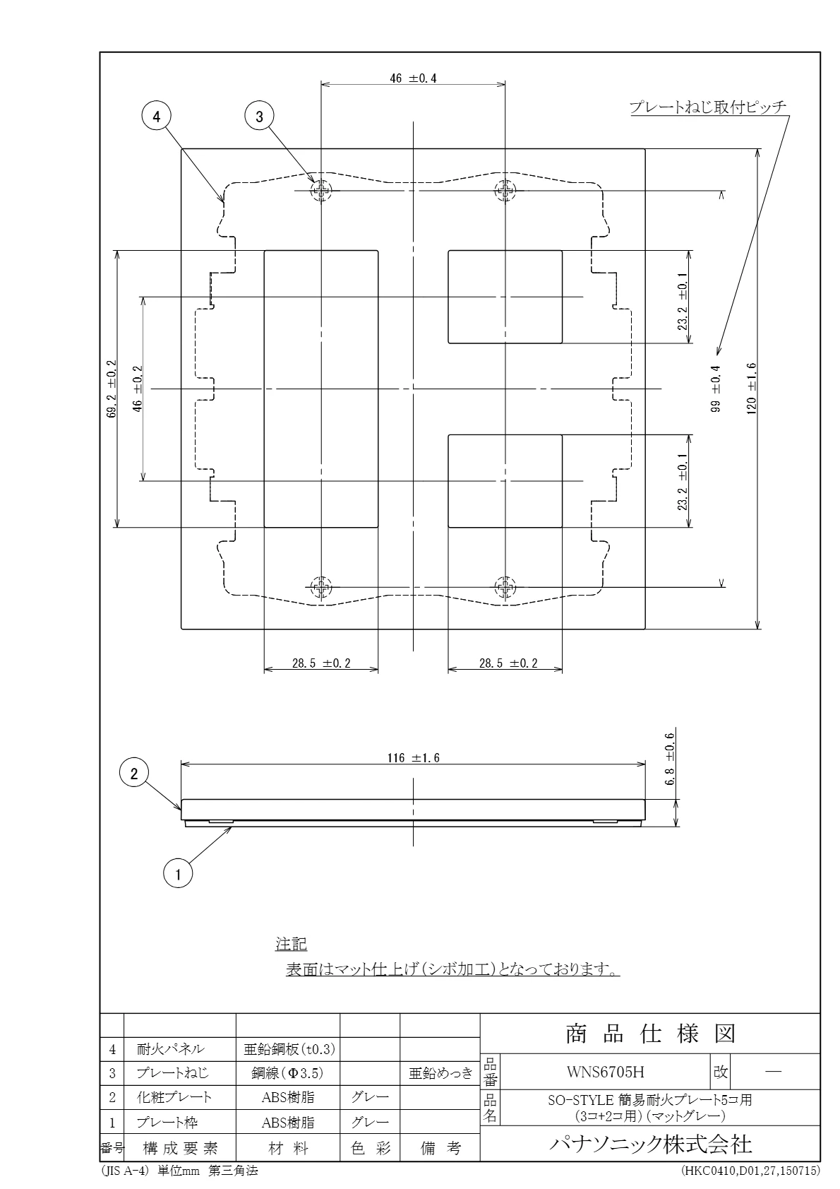品番:WNS6705H品名:SO-STYLE簡易耐火プレート5コ用(3コ+2コ用)(マットグレー)