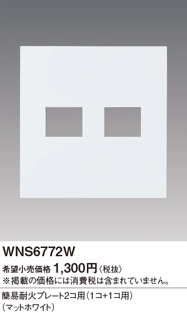 WNS6772W SO-STYLE簡易耐火プレート2コ用(1コ+1コ用)(マットホワイト)
