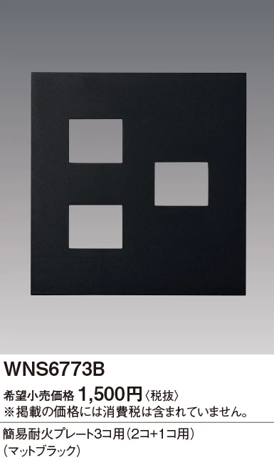 WNS6773B SO-STYLE簡易耐火プレート3コ用(2コ+1コ用)(マットブラック)