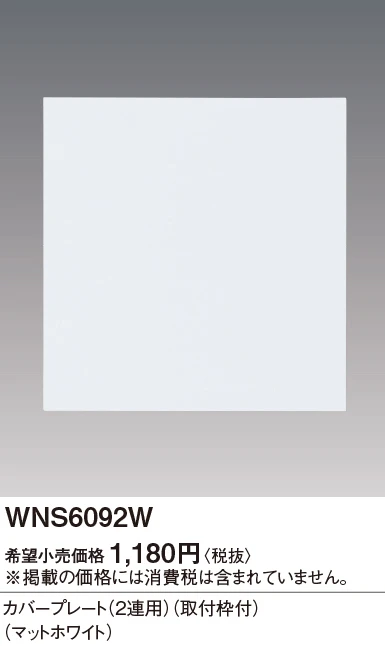 WNS6092W SO-STYLEカバープレート(2連用)(取付枠付)(マットホワイト)