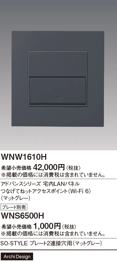 WNS6500H SO-STYLEプレート2連接穴用(マットグレー)