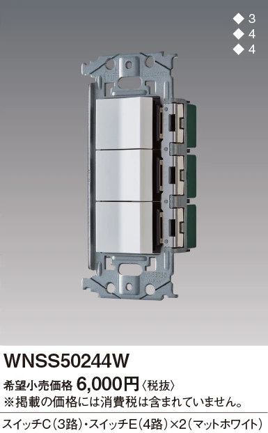 品番:WNSS50244W品名:SO-STYLE埋込スイッチセット(スイッチC、E×2)(マットホワイト)