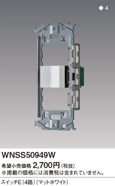 品番:WNSS50949W品名:SO-STYLE埋込スイッチセット(スイッチE)(マットホワイト)