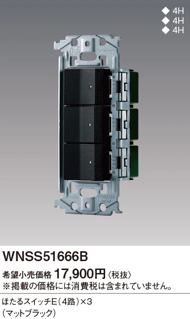 品番:WNSS51666B品名:SO-STYLE埋込スイッチセット(ほたるスイッチE×3)(マットブラック)