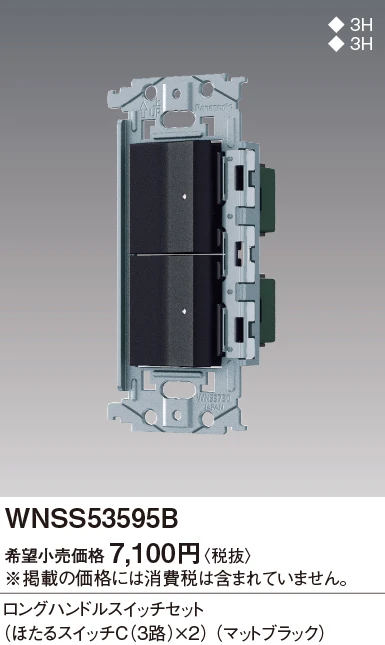 品番:WNSS53595B品名:SO-STYLE埋込ロングハンドルスイッチセット(ほたるスイッチC×2)(マットブラック)
