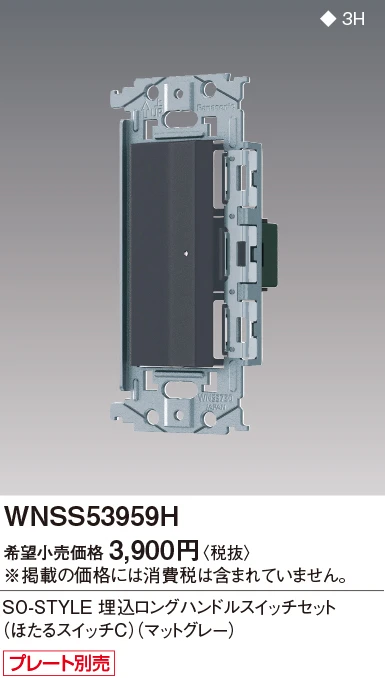 品番:WNSS53959H品名:SO-STYLE埋込ロングハンドルスイッチセット(ほたるスイッチC)(マットグレー)