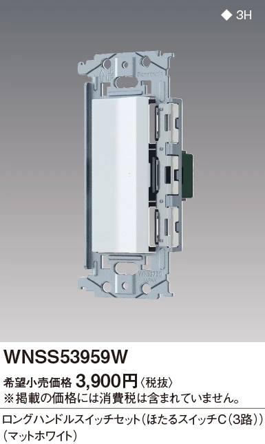 品番:WNSS53959W品名:SO-STYLE埋込ロングハンドルスイッチセット(ほたるスイッチC)(マットホワイト)