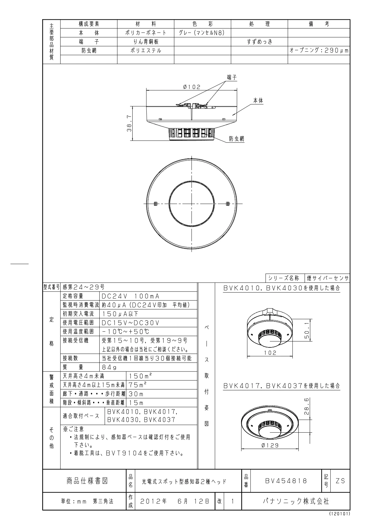 BV454818 光電式スポット型感知器2種ヘッド 非蓄積型