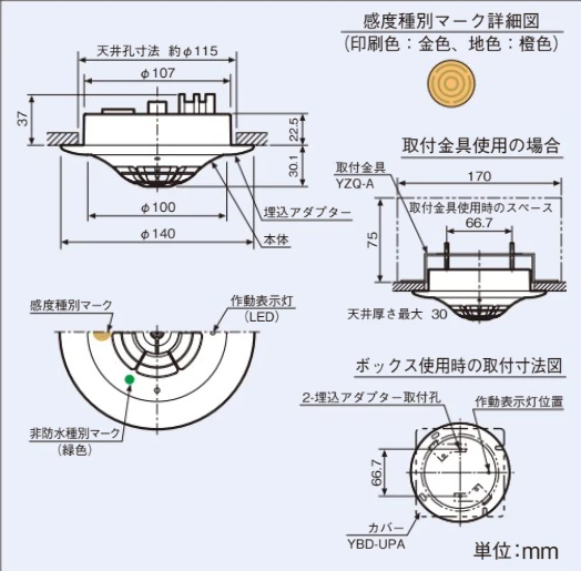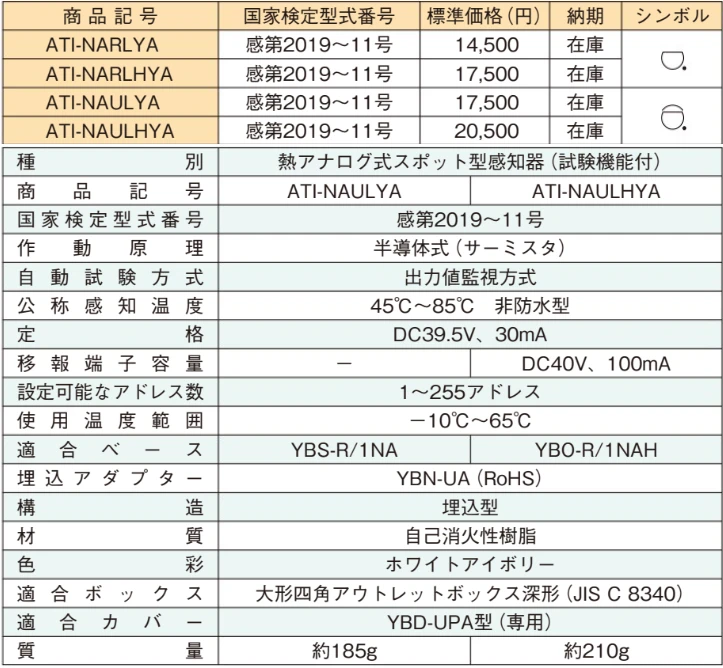 ATI-NAULYA 熱アナログ式スポット型(埋込型)(自動試験機能付)セット品(ヘッド+ベース+アダプタ)
