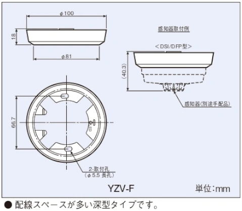 既設の感知器との交換及び配線スペースを確保したい場合は専用の感知器用アダプタ(YZV-E・F)をご使用ください。