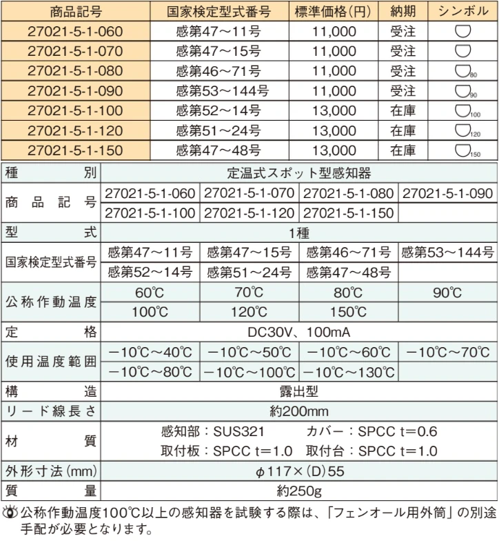27021-5-1-100 定温式スポット型感知器(露出型)作動温度100℃ 高温用