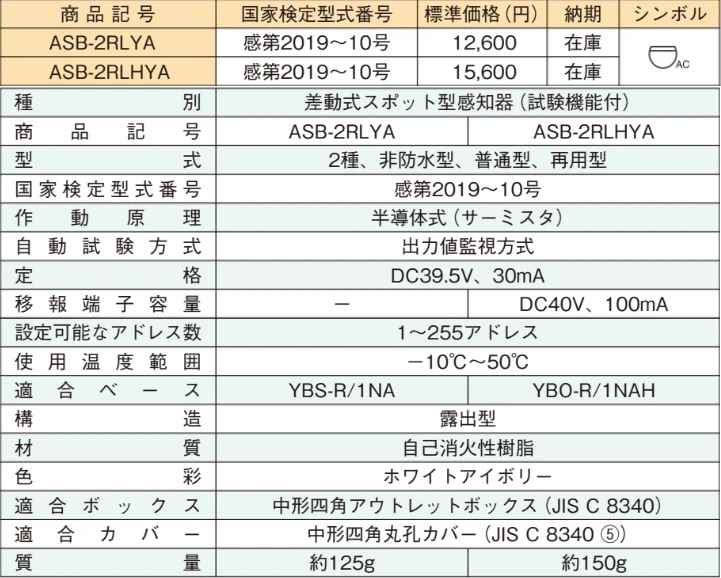 ASB-2LYA 差動式スポット型感知器(露出型)(自動試験機能付)感知器ヘッド,自動試験機能付