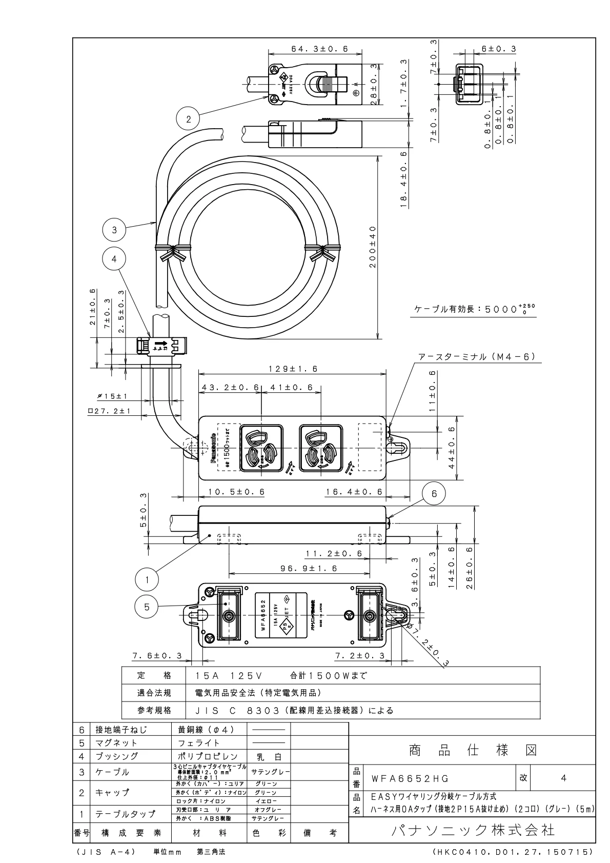 - 電設資材 > パナソニック(Panasonic) > タップ > ハーネス用OAタップ > 2コ口抜け止めアース付