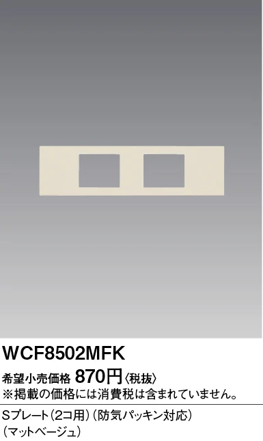 WCF8502MFK Sプレート(2コ用)(防気パッキン対応)(マットベージュ)