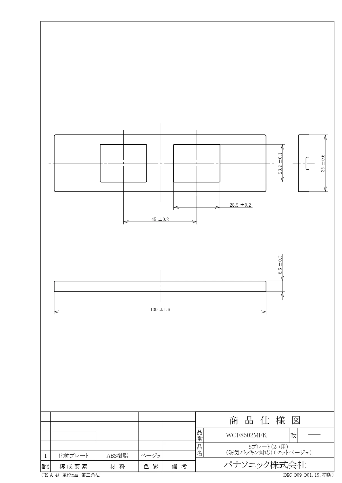 品番:WCF8502MFK品名:Sプレート(2コ用)(防気パッキン対応)(マットベージュ)