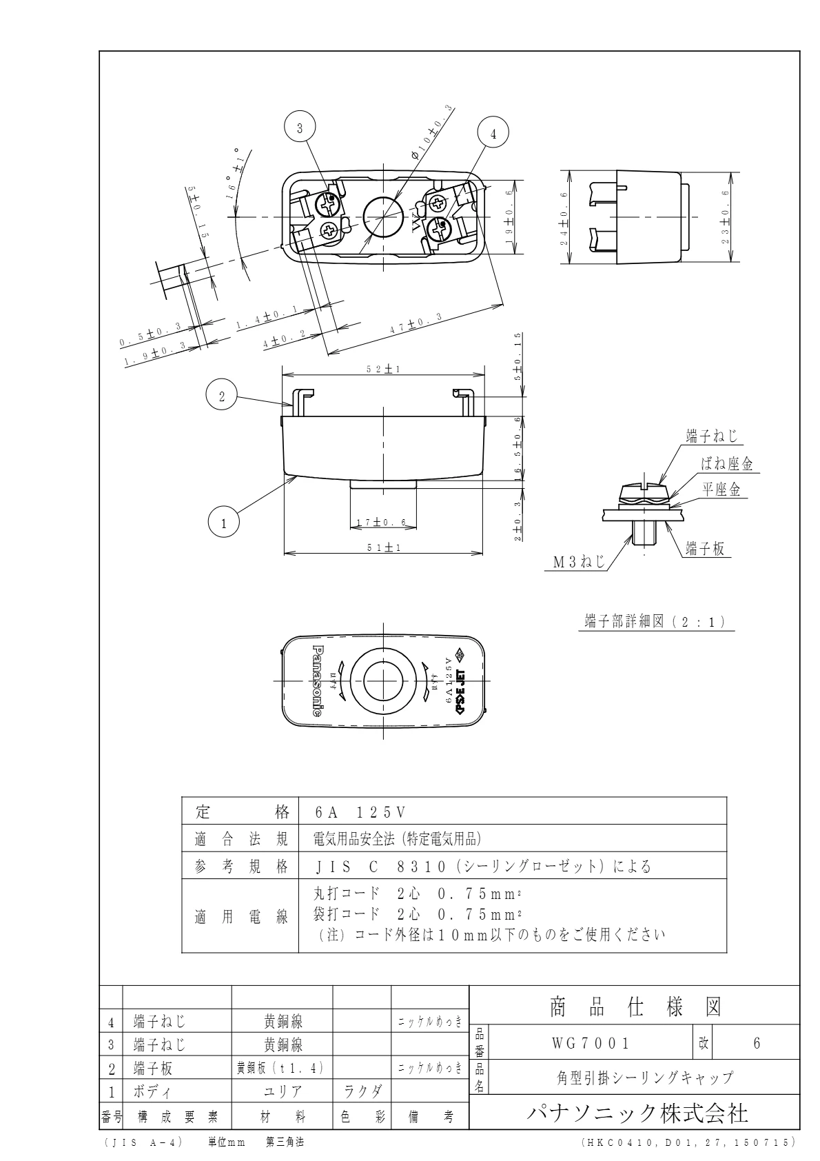 - 電設資材 > パナソニック(Panasonic) > 引掛シーリング・ローゼット > 角形