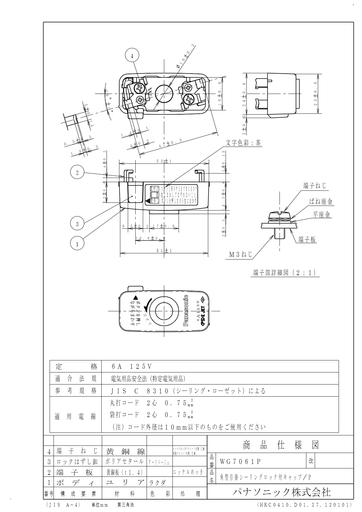 品番:WG7061P品名:角型引掛シーリングロック付キャップ/プラスチック個装
