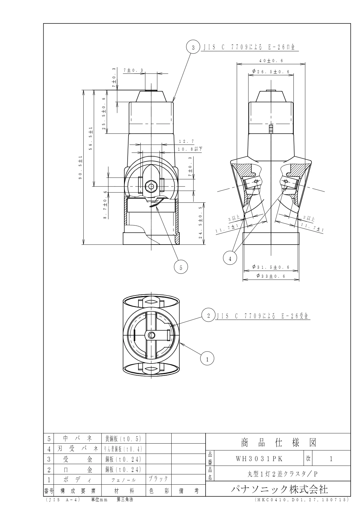 品番:WH3031PK品名:丸型1灯2差クラスタ/プラスチック個装