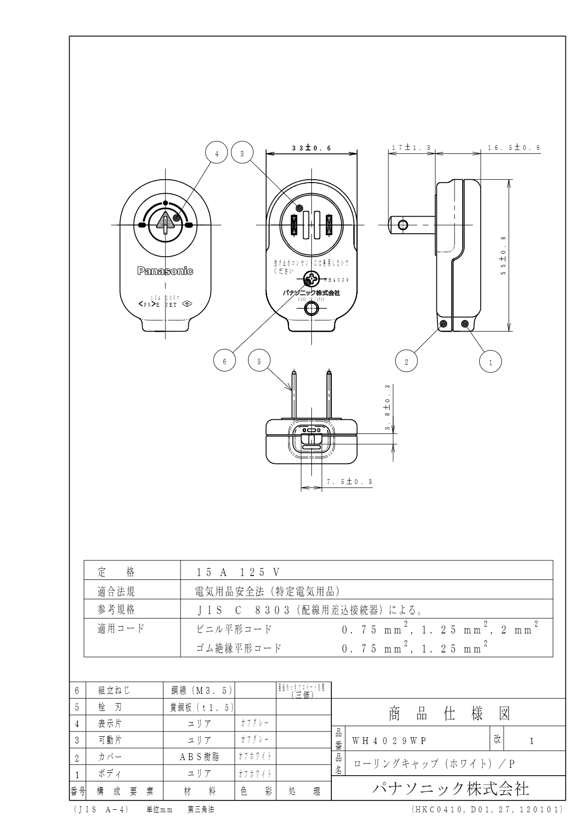 WH4029WP ローリングキャップ(ホワイト)/プラスチック個装