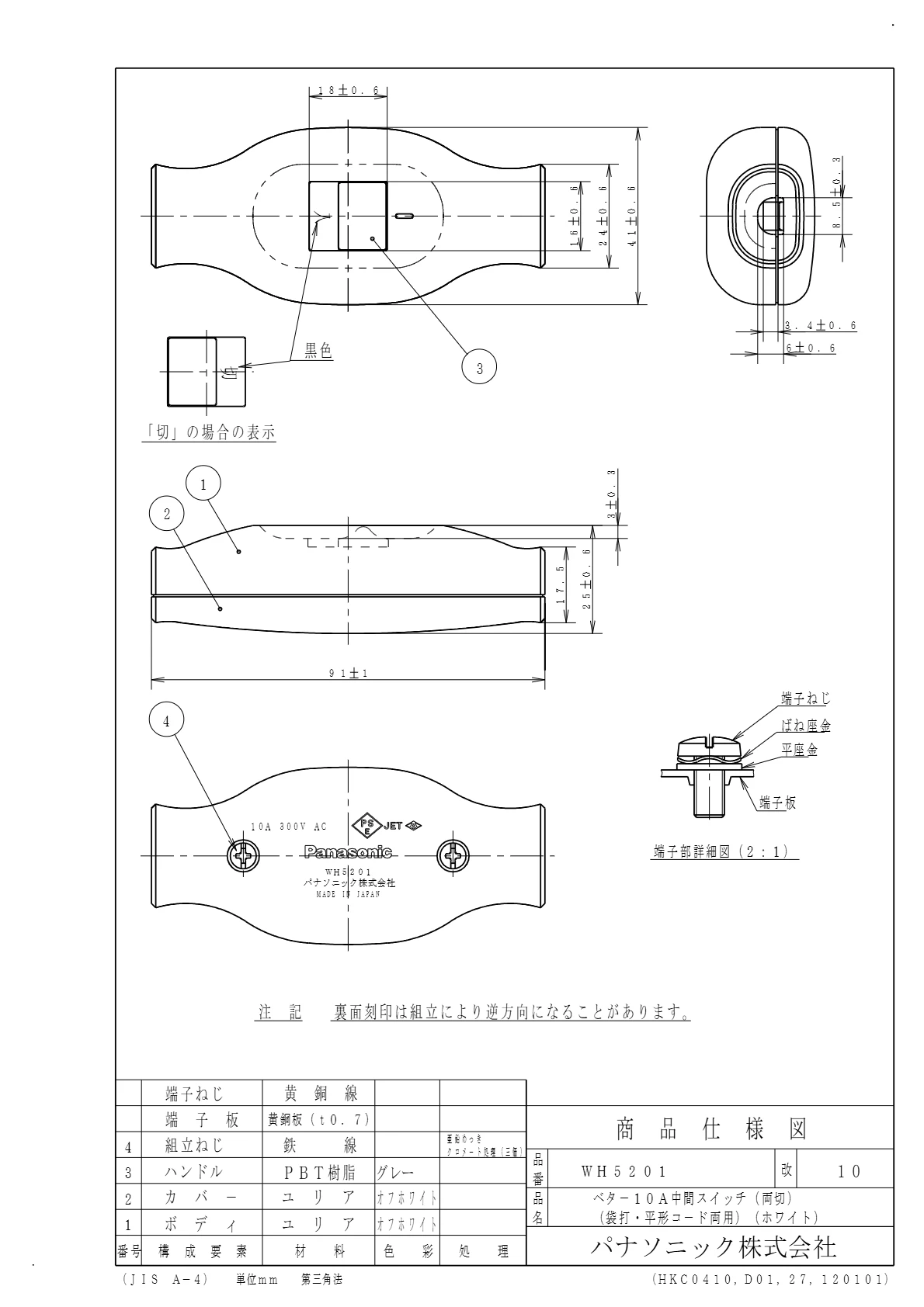 品番:WH5201品名:ベター10A中間スイッチ(両切)(ホワイト)