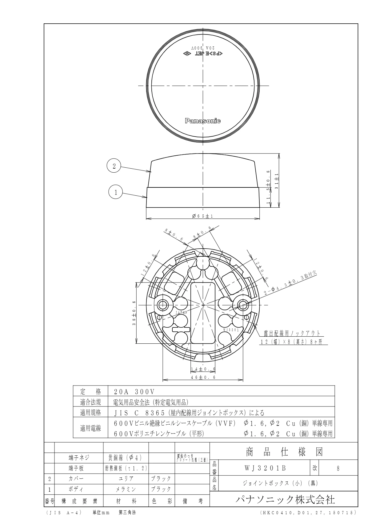 - 電設資材 > パナソニック(Panasonic) > ボックス > ジョイントボックス