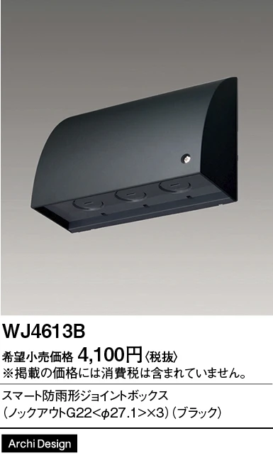 品番:WJ4613B品名:スマート防雨形ジョイントボックス(ノックアウトG22<φ27.1>×3)(ブラック)
